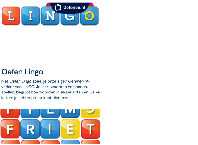 - Link naar website https://oefenen.nl/programmas/oefen-lingo/